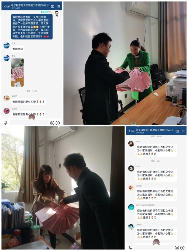 12月6日,电子科学与工程学院分工会组织开展了“暖冬关怀”活动,及时将组织的关怀和温暖送到了全院教职工心坎上。老师们表示,感谢分工会冬日送来的别样温情,全体老师充分感受到了来自学院的浓厚关怀与重视,同时也备受鼓舞,将继续守好初心、担好使命,鼓足干劲、振奋精神,以最佳的状态投入工作,全力以赴完成好各项任务,为学校高质量通过本科教学工作合格评估和“十四五”征程再攀新高不懈努力奋斗。