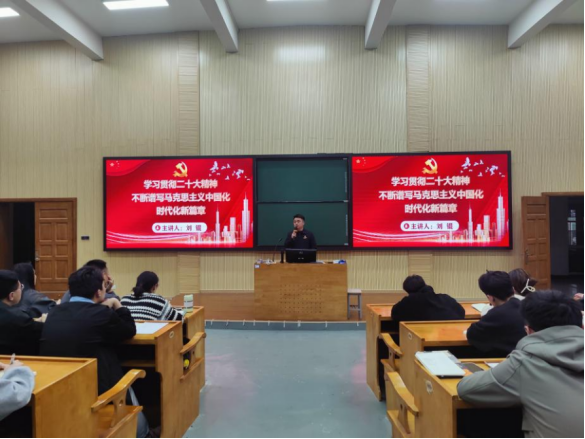 刘锟以《学习贯彻二十大精神 不断谱写马克思主义中国化时代化新篇章》为主题,围绕党的二十大主题和主要成果、党的二十大提出的“三个务必”、新时代新征程中国共产党的使命任务等三个方面展开讲解。辅导内容深入浅出、内涵丰富、逻辑严谨、思想深刻,具有很强的指导性。认真聆听完报告后,参会学生备受鼓舞,大家纷纷表示,要以这次学习活动为契机,进一步深刻领会把握党的二十大精神实质和丰富内涵 以饱满的热情和强烈的使命踔厉奋发、笃行不怠。
