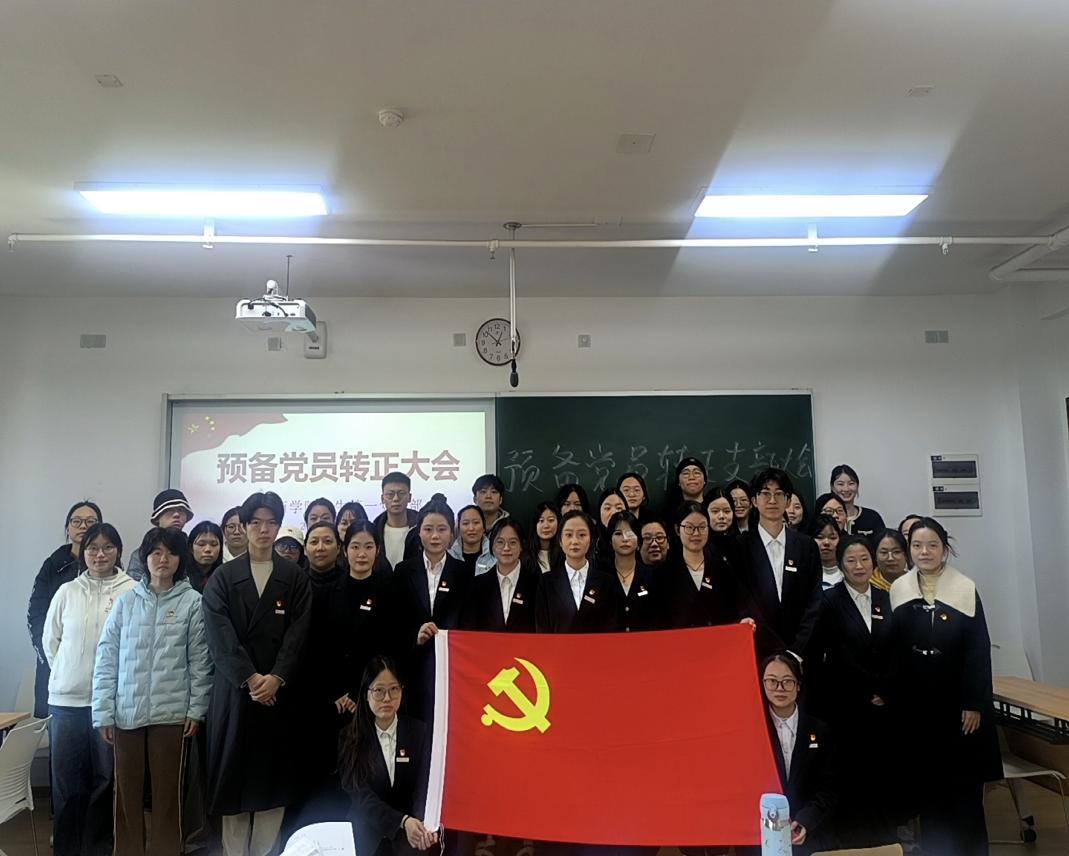 2025年12月3日中午,国际商学院学生第一、第二、第三党支部于信息中心楼相关教室召开预备党员转正大会。经过庄重而严格的组织程序,肖轩、马学智、高欣妮等共计43名预备党员光荣转正,成为中国共产党正式党员。大会在庄严的国歌声中拉开帷幕。各支部严格遵循党员发展程序,清点并确认到会具有表决权的正式党员人数符合规定,确保了会议的有效性与严肃性。