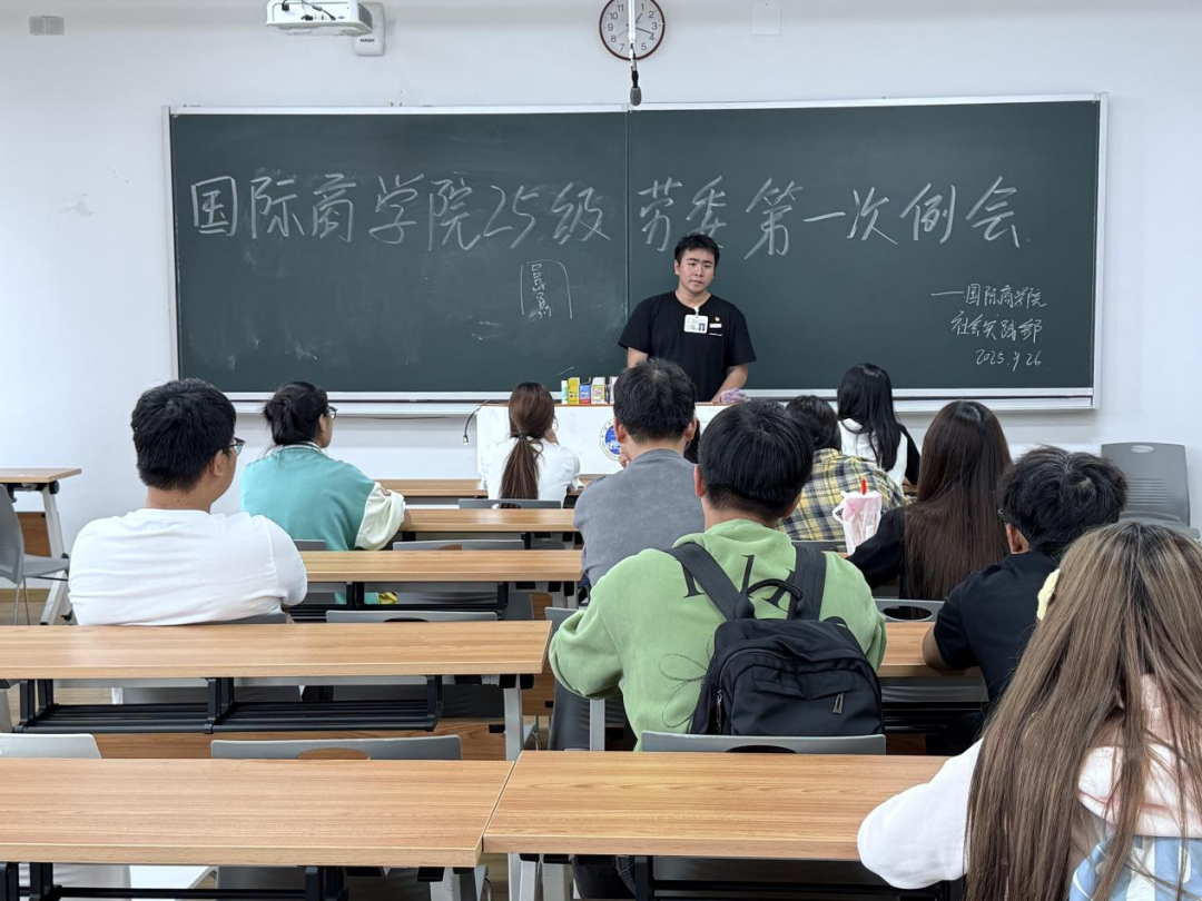 本周五,国际商学院学生会社会实践部在信息中心楼607召开了25级劳动委员第一次例会。会议均由国际商学院学生副书记杨中锐和社会实践部负责人方琴主持,25级全体劳动委员参与。