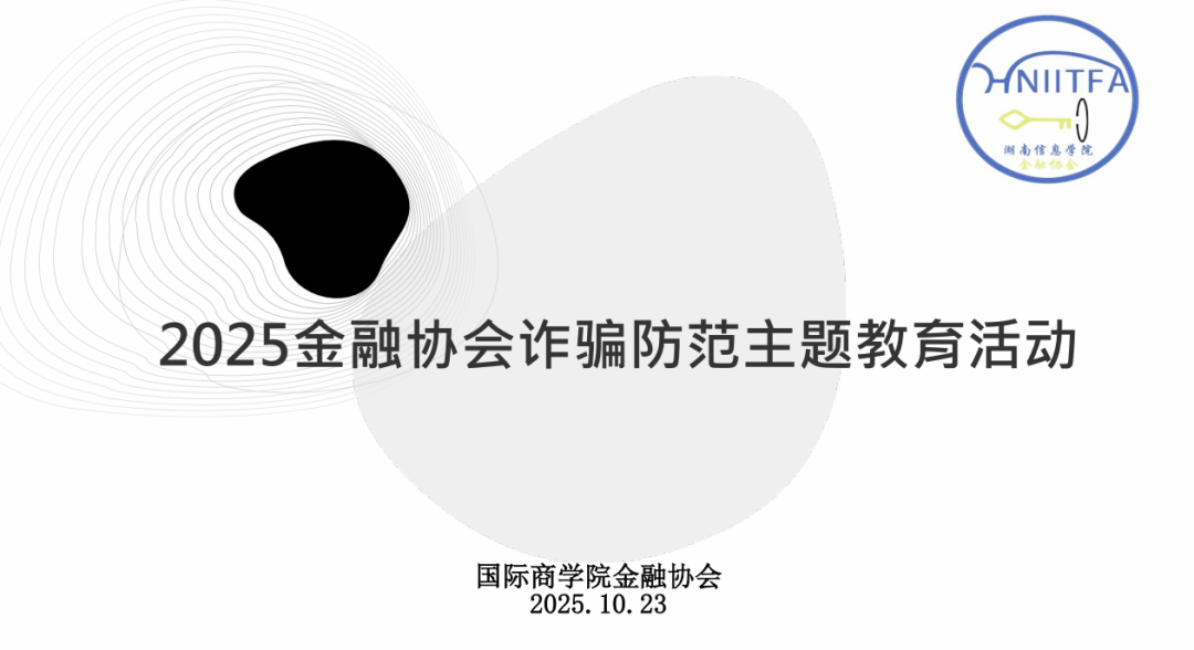为切实提升同学们的金融安全防范意识,构建坚实的校园反诈“防火墙”,国际商学院金融协会于2025年10月23日19:00成功举办“金融反诈,青春护航”主题活动。活动现场互动积极、氛围热烈,获得参会同学的一致好评。