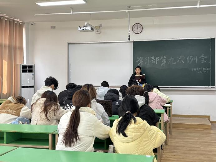 为推进部门各项工作的稳步开展,学习部于2025年12月3日12:15在信息中心楼807教室召开了第九次干事例会,学习部负责人廖文洁在会上先对第十三周工作进行全面总结,重点重申值班纪律要求;随后对后续重点工作进行梳理部署:一是“商青影院”活动,要求全体干事熟练掌握活动流程,同时强化观影现场纪律管理;二是“团学大比武”,鼓励干事扎实学习办公技能,在实践中提升综合能力。此外,会上完成部门干事小组轮换,帮助干事全面熟悉各小组工作职责,进一步提升团队协作效率。