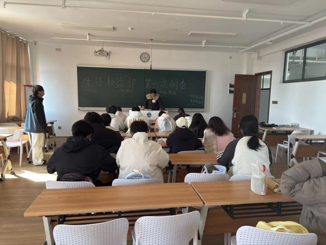 生活权益部在2025年12月3日日12:10信息中心楼509召开了部门第六次例会,由生活权益部负责人申倬寰和柳诗雅主讲,会上主要强调了道德银行审批的注意事项,生日贺卡的配送任务安排以及第二次部门内分组。此次分组有效提高生活权益部部门内工作效率,增进部门干事的交流,全面提升部门干事的能力。