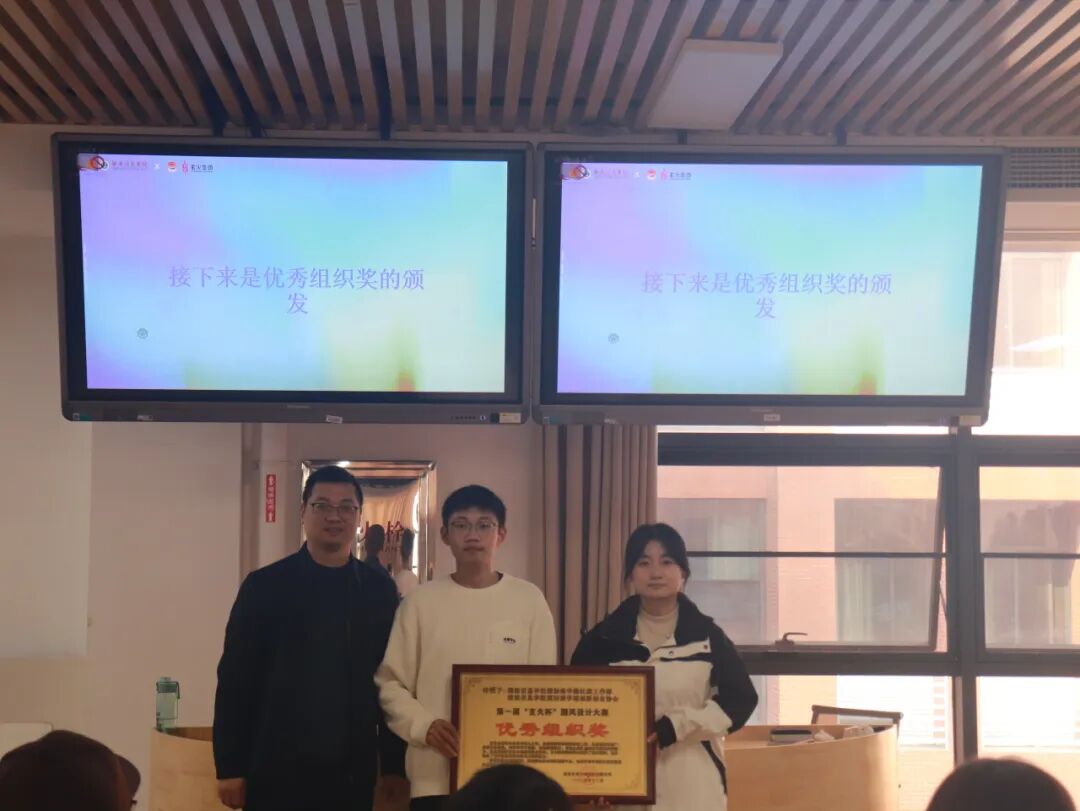 颁奖仪式现场气氛庄重而热烈,众多嘉宾与师生齐聚一堂,共同见证这场文化与创意交织的设计盛宴。玄火互动有限公司总经理支圣为、校团委书记丁雪、国际商学院副院长匡益明、艺术学院副院长刘勇奇、创新创业协会指导教授肖鹰以评委身份莅临现场并为获奖选手颁发证书,并特邀本次活动的总负责人胡楠老师和商学院团委书记荀仕杰老师作为嘉宾莅临现场,为获奖同学发放奖品。