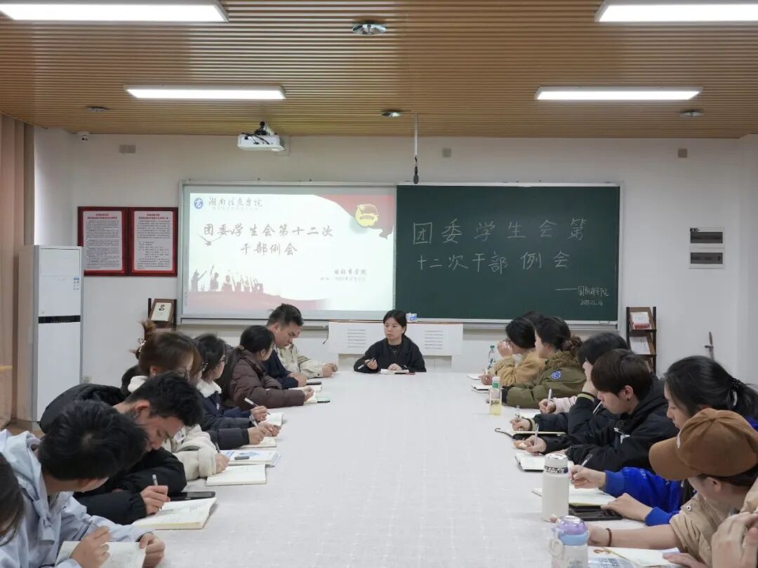 为明确期末各项任务,着力解决当前工作中存在的问题,2025年12月16日12:20,国际商学院团委学生会于信息中心楼408教室召开第十二次干部例会。会议由学生第一副书记滕飞骏主持,团委书记荀仕杰及全体团学干部共同参与。