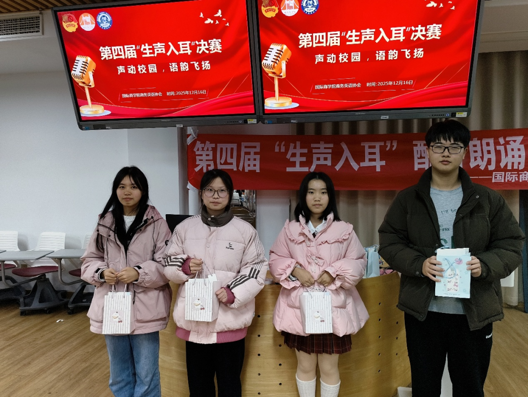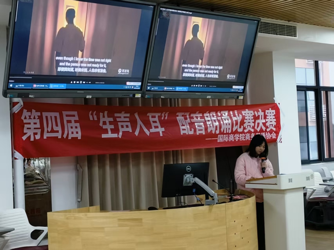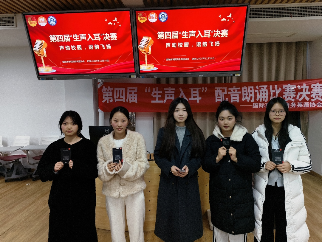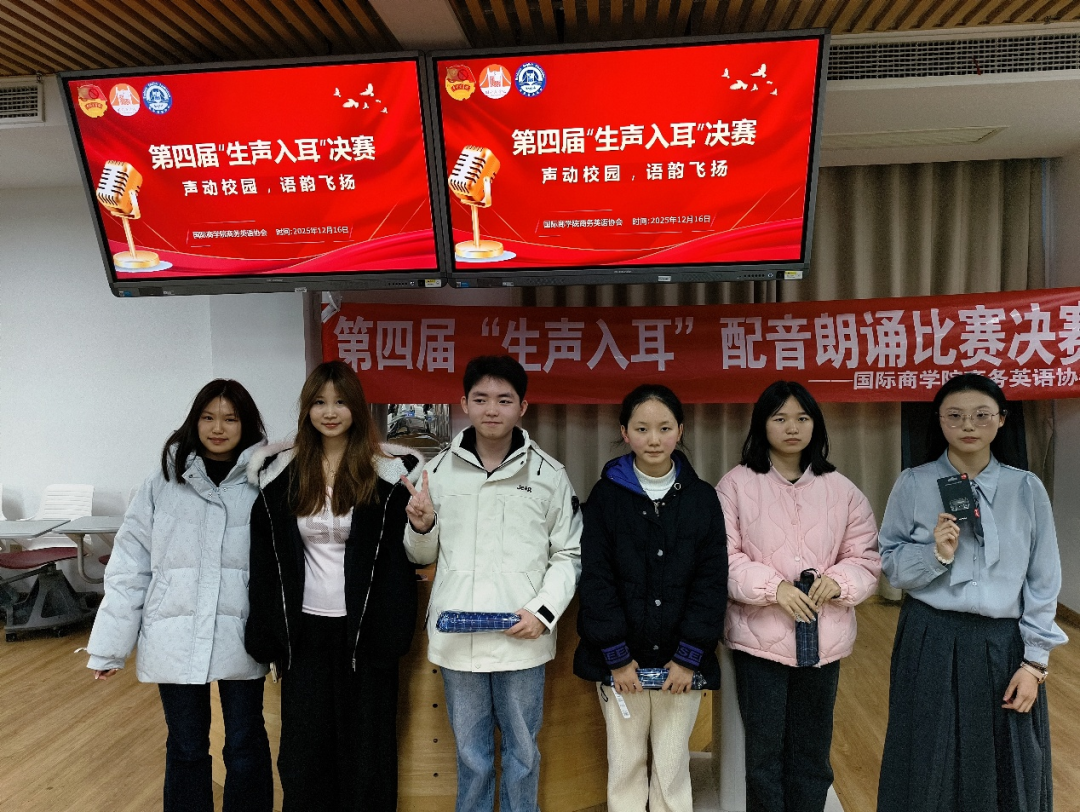 2025年12月16日,国际商学院第十一学术报告厅内余音绕梁,第四届“生声入耳”配音及朗诵比赛决赛圆满落幕。十组选手以声为笔、以情为墨,用灵动声线赋予文字生命力,用真挚情感传递语言魅力,在这场声音的盛宴中,为全场观众献上了一场直击心灵的听觉与情感双重洗礼。