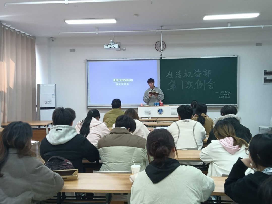 本周生活权益部于2026年3月12日中午12:10在信息中心楼509教室召开本学期第一次部门例会,由生活权益部负责人申倬寰对部门后续即将迎来的各项活动进行了简要讲解,如消费者权益日的摆点及4月的部门比拼比赛,同时教育生活权益部干事应积极配合参与部门任务安排并告知各位后续会继续开展干事们的技能培训活动。最后,负责人谭思洁对部门日常工作任务的细节进行了着重强调,要求生活权益部干事在对各班干部及部门内部的考核中,仔细检查工作完成情况是否真实,杜绝个别同学投机取巧的行为。