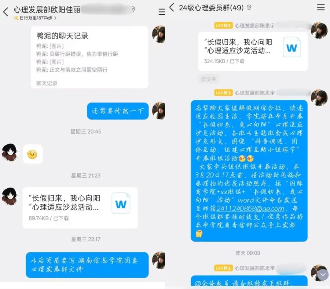 扎实做好心理发展部日常基础工作,持续做好“心灵之窗”官Q运营工作,及时发布心理相关内容;组织干事严格遵守团学值班执勤要求,按时到岗、认真履职;同时督促干事积极响应团学工作安排,在团学总群及时完成报数,保障部门与团学组织的工作衔接顺畅、信息传达高效。