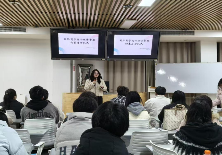 2026年3月19日晚上19:00,国际商学院心理情景剧启动仪式于信息中心楼517报告厅顺利开展。本次仪式由心理专干程周老师牵头,心理发展部负责人主讲,大一大二全体心理委员到场参会,为后续心理情景剧开展奠定良好基础。