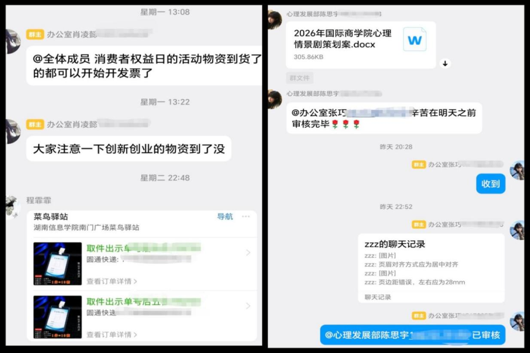 统筹日常服务与衔接工作:持续对接学院各部门及团学组织,做好工作沟通与衔接,及时响应各类服务需求,解答相关工作疑问;同步梳理本周工作推进情况,做好后续工作规划,保障社会实践部各项日常工作平稳有序开展。