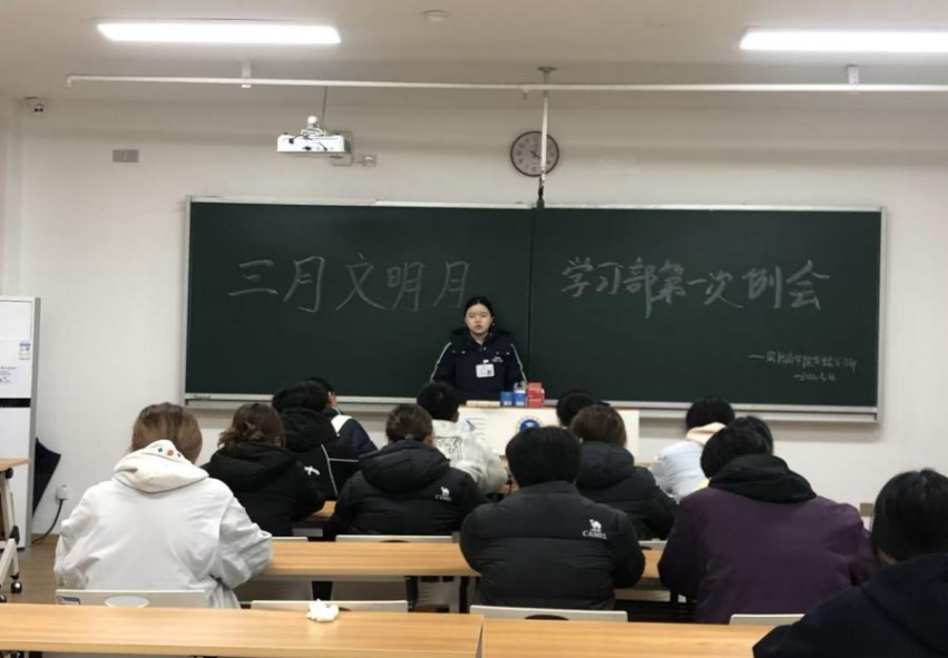 本周,学习部积极响应三月文明月主题,召开本学期首次部门例会,稳步推进各项工作,同时顺利开展本学期第一期“商青影院”活动,整体规范有序、成效良好。