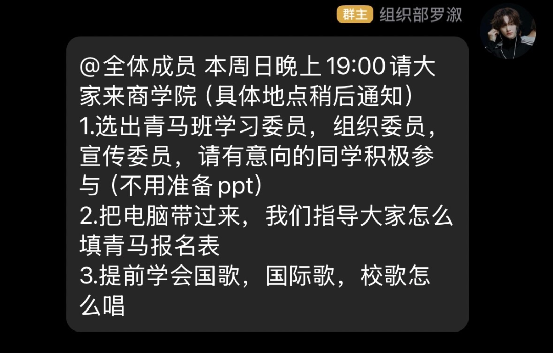 本周宣传部持续做好官方QQ和视频号的日常运营维护工作,2026年3月18日中午12:15在信息中心楼607顺利召开宣传部第六次例会,会上安排部署了后续宣传相关工作,并同步了解部门成员留任意向。另外积极推进商小青虚拟形象的设计工作,主动对接院内各部门完成各类活动的现场拍摄与推文发布工作,针对有留任意向的同学开展一对一沟通谈话。
