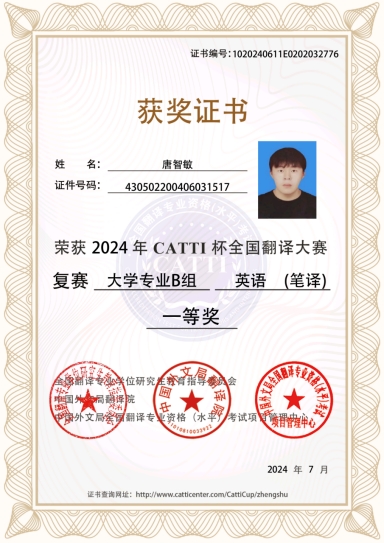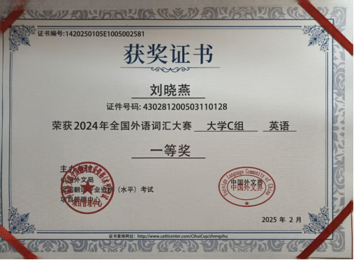 学业攻坚,勇攀高峰。支部以学业为抓手,营造浓厚的学习氛围,获得2024年度“优良学风班级”集体荣誉称号。支部成员获国家奖学金1人、国家励志奖学金3人、校级湘信英才二等奖学金1人。在学科竞赛方面,支部成员累计获得国家级奖项6项、省级奖项5项、校级奖项33项,院级奖项5项,专业素养能力较高,专业学习成效显著,其中获得了第四届全国高校商务翻译能力挑战赛特等奖、2024年CATTI杯全国翻译大赛大学专业B组英语笔译一等奖等诸多奖项。支部成员专业证书考取成果显著,大学英语四级考试累计通过率85%,普通话证书二乙及以上通过率76%,驾驶证通过率15.2%,实现“一专多证”全覆盖。