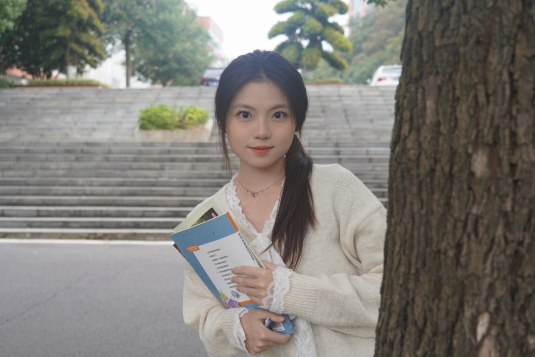 在专业学习上,余佳美始终以“勤”为径,以“优”为标。学业成绩稳居专业前10%,荣获2023-2024年度国家励志奖学金。面对曾经的英语短板,她没有畏惧,而是善用碎片时间持续攻坚,最终成功通过英语四级。她的“战场”远不止于课堂。她主动拓展PPT设计、海报制作、文案策划等硬核技能,并将其转化为一项项竞赛硕果。