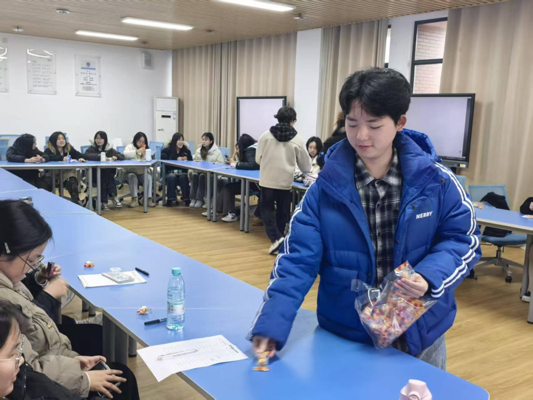为缓解开学焦虑、增进班级凝聚力,活动设置了“女巫的毒药”趣味互动游戏。希望同学们在轻松的游戏中体会“试错不是失败,而是成长经验”,学会接纳不完美、允许自己循序渐进,现场笑声不断、氛围热烈。同时现场为大家送上了小饼干、汉堡包软糖、四叶草等暖心礼物,送上“干掉烦恼、包你好运、叶有收获”的美好祝福,氛围温馨。
