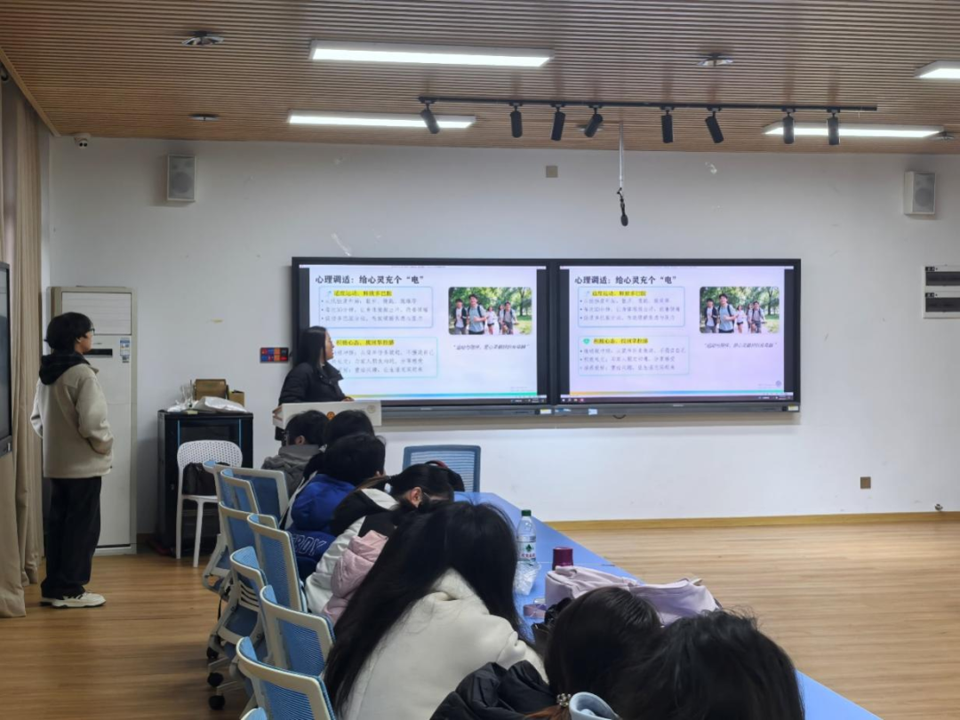 活动伊始,心理委员围绕假期综合征展开科普,详细讲解疲劳、失眠、情绪低落、注意力分散等常见表现,引导同学们正确认识节后不适。随后从作息调整、饮食调理、适度运动、积极心理暗示等方面,分享科学实用的自我调节方法,为大家提供清晰可行的“收心指南”。