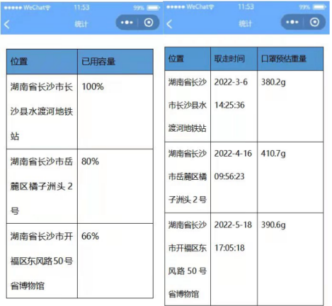 用装置相对应的小程序来投递口罩的用户,将获得相应的积分奖励,奖励可兑换防疫物品或降低相应的价格,口罩回收后,用户程序界面将显示用户累计投递口罩的贡献,提高用户的回收意识。
