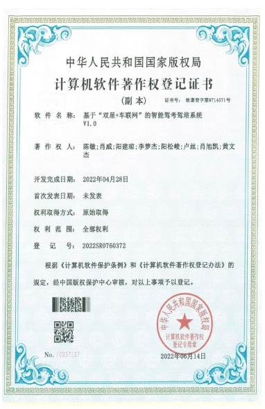 本作品通过“人-车-路-云”交通参与要素有机结合,使车联网自动驾驶系统在环境感知、计算决策和控制执行等方面的能力升级,通过协同环境感知,解决车辆容易受恶劣环境的影响以及非视距感知等问题;通过协同系统计算决策,解决在驾考与驾培过程中的突发性问题:如超速过红灯,转向灯错误,车辆超速等问题,增加车与车、车与路之间的系统性决策问题,解决车辆优先级管理,交通路口优化控制等情况;协同控制执行,若驾驶员在开车过程中因操作失误,易导致错误的驾驶行为,此时通过协同控制执行,能对车辆驾驶行为进行干预,并可远程遥控车辆脱困,从而避免次生交通事故的发生。同时自动驾驶系统发展将会进一步应用5G,人工智能通信技术,促进实现汽车和交通服务的新模式新业态发展,而智能驾考驾培就是交通服务新模式下的诞生新品中的一员。