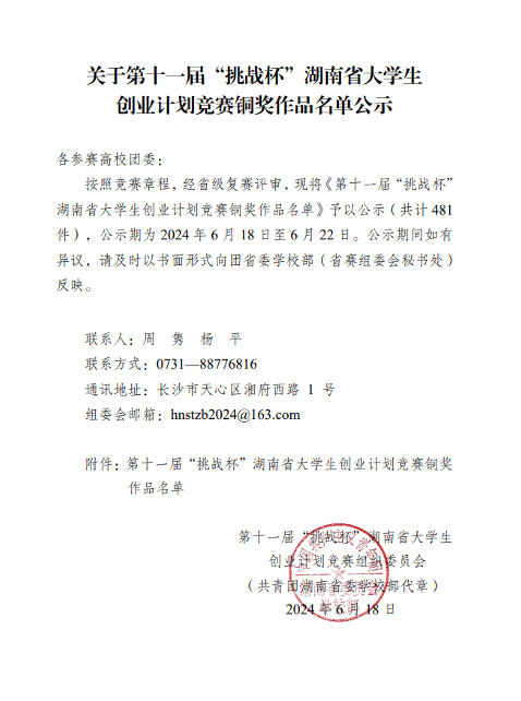 项目成果:第十一届“挑战杯”湖南省大学生 创业计划竞赛铜奖