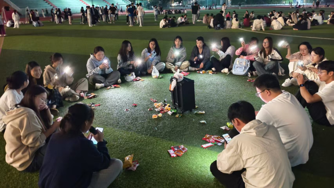 国际商学院创新创业协会新生见面会于2025年10月16号晚上19:00-20:30在新校区操场举行。本次见面会从一场“即兴歌友会”轻松开场,由协会干部带动全场合唱校园金曲,更有3位新生主动举手献唱,用歌声来打破陌生感,现场氛围瞬间升温。